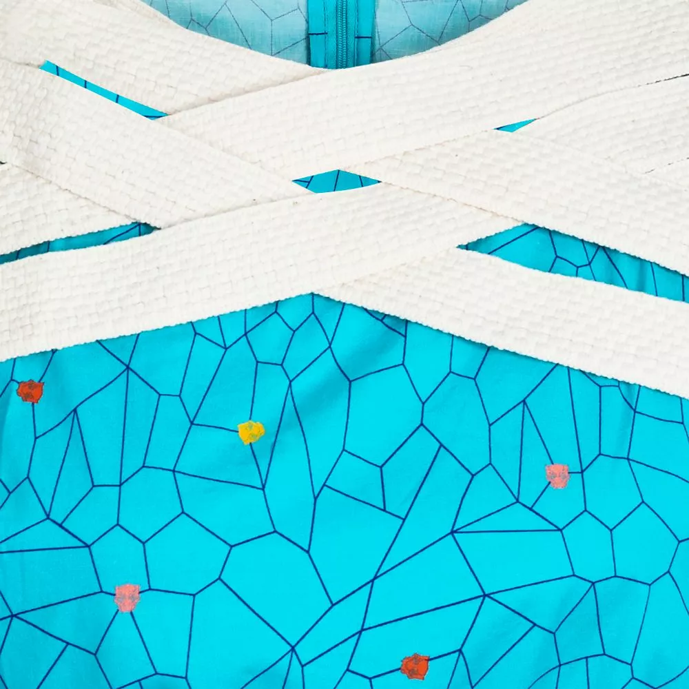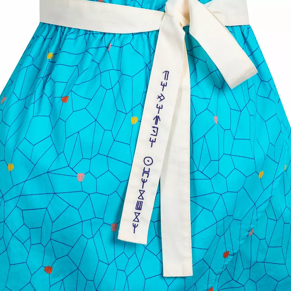 Tie a powerful look together with this Black Panther: World of Wakanda poplin knit tunic. The allover geometric print features pops of color in the shape of Black Panther icons. Elevated touches include cross strap detailing at the neckline, a petal hem and a decorative tie featuring ”Wakanda Forever” written in the Wakandan alphabet. It’s a scene stealer in any language.