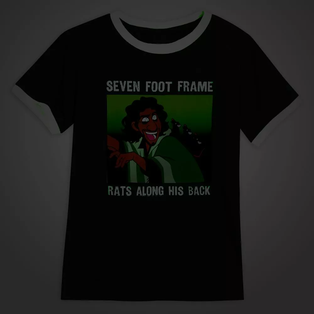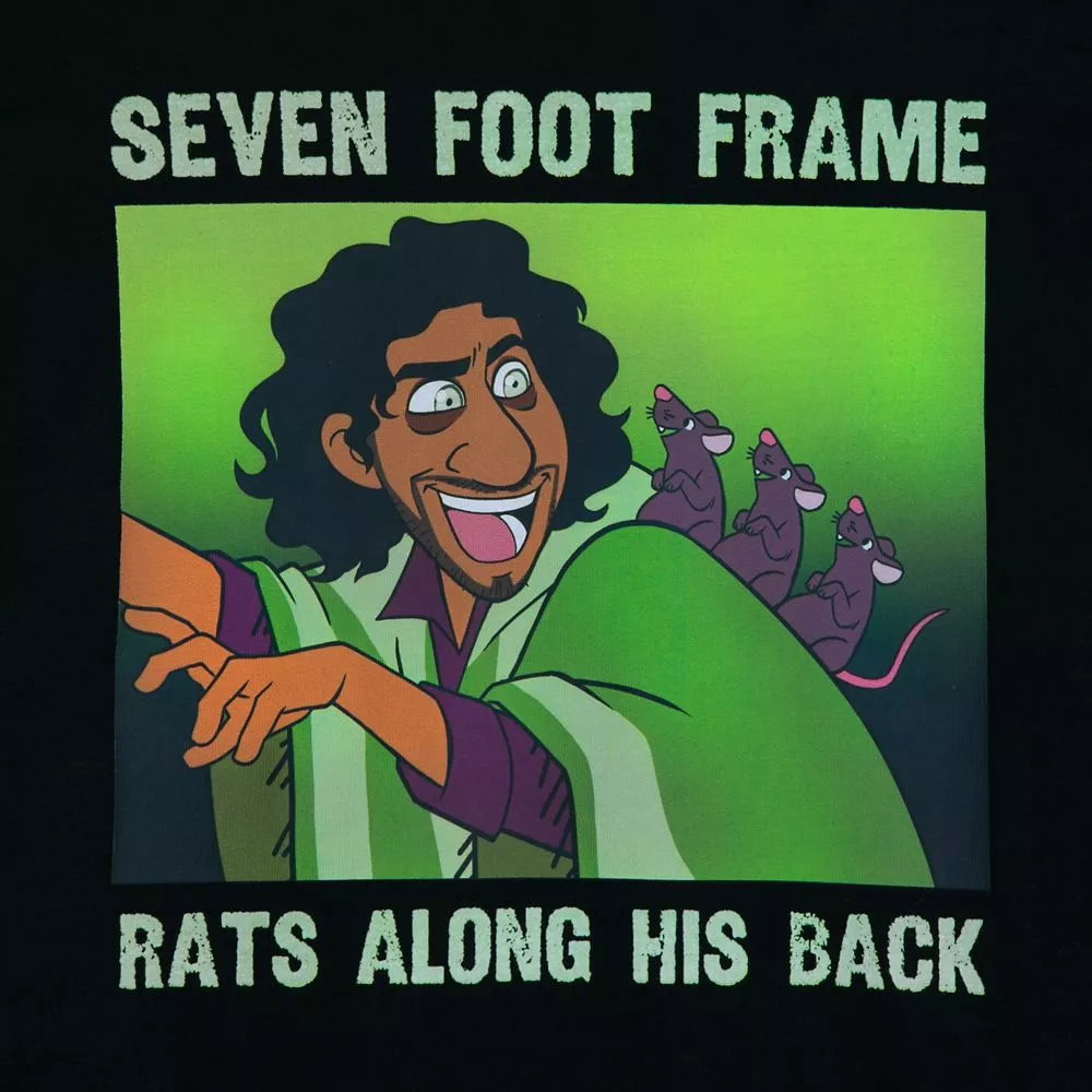 The whole town will be talking about this ringer tee inspired by the hit song We Don’t Talk About Bruno from Disney’s Encanto. Features glow-in-the-dark ”Seven foot frameβrats along his back” text, plus character graphics with glowing eyes.