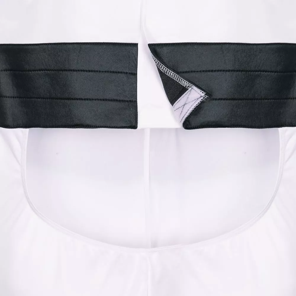 - Costume opens in back for front entry only, with self-stick fabric closure