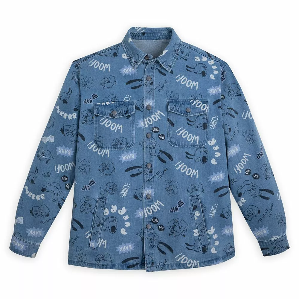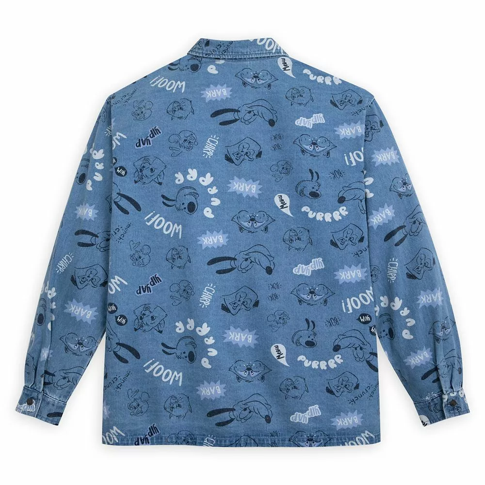 Your style gets a chorus of approval in this Disney Critters denim shirt. The allover pattern features some of your favorite Disney pals who all have a lot to say, including Pluto, Meeko, Percy, Little Brother and others. They turn a classic button-down cotton shirt into something fresh and new that can be worn on its own or layered for a look that will leave everybody speechless.