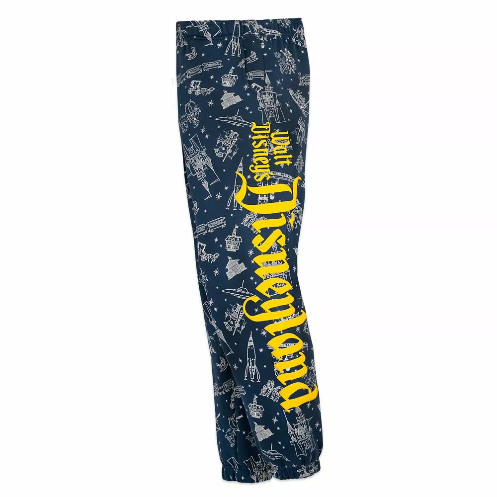 All your favorite Disneyland attractions and sights are pictured in the allover design of these fashionable pants created as part of the Disney100 celebration. Space Mountain, monorail and the Fantasyland Castle are among the sights you’ll see when your eyes travel around these casual cotton pants that will get you excited about your next visit to The Happiest Place on Earth.