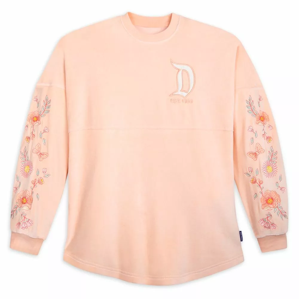 Get into the spirit of Disneyland with this pullover jersey in pretty peach! Featuring the Disneyland logo on the back, ”D” icon on the front and embroidered flowers and bows on the sleeve, this cute top is perfect for making wonderful memories at The Happiest Place on Earth.