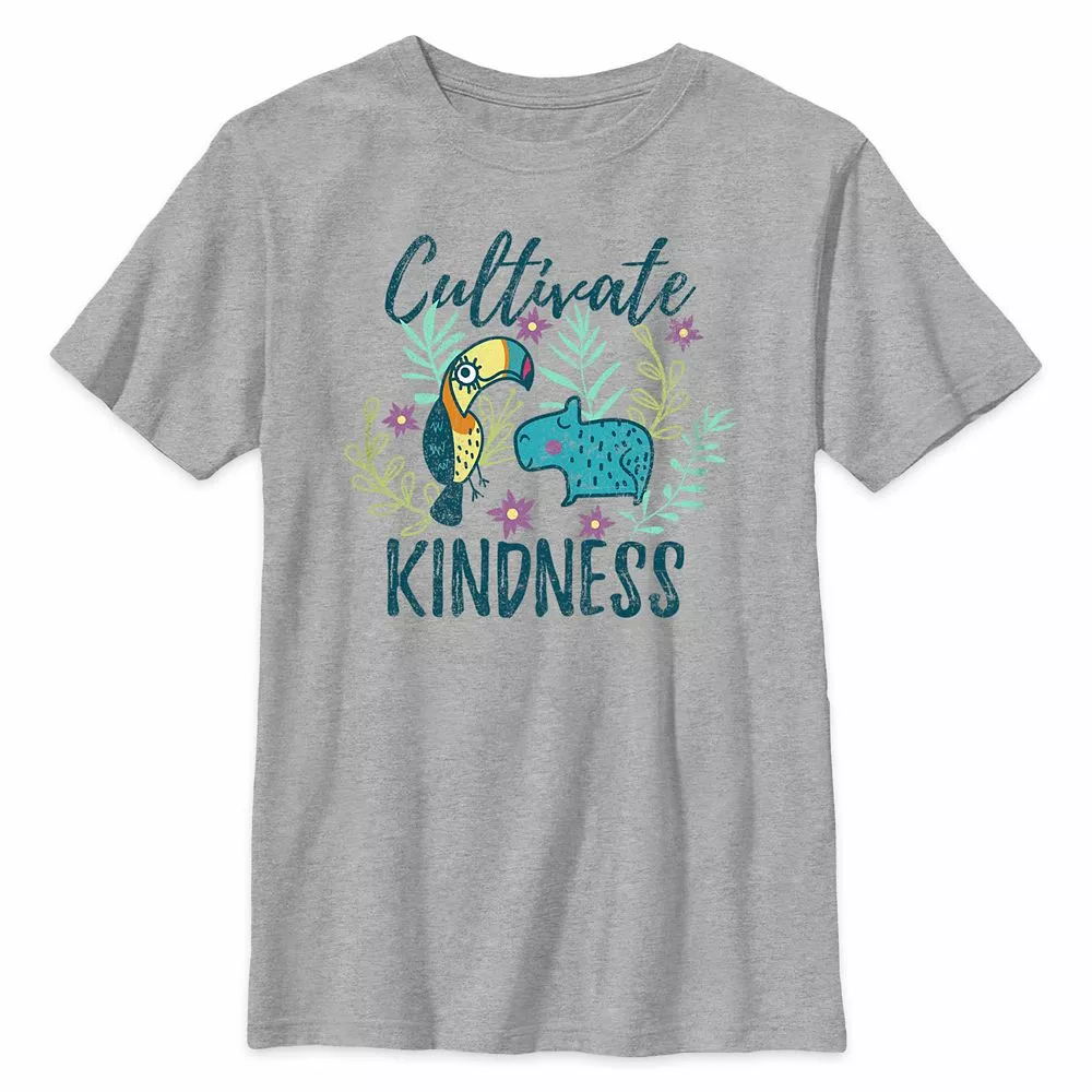 Cultivate kindness and cool at the same time with this colorful Encanto design. A toucan and a capybara are featured in distressed inks across a heathered jersey tee.