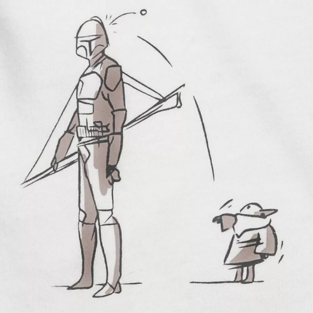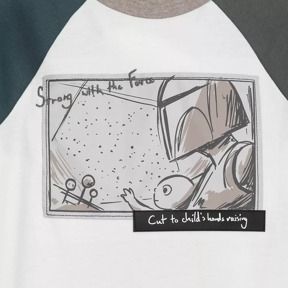 Your child will be ”Strong with the Force” in this awesome Mandalorian raglan tee. A cool storyboard sketch and the words ”cut to child’s hands raising” puts them in the center of the action. Inspired by Star Wars: The Mandalorian, it features an extra bit of fun with art at the hem of Grogu chucking a pebble off Mando’s helmet.