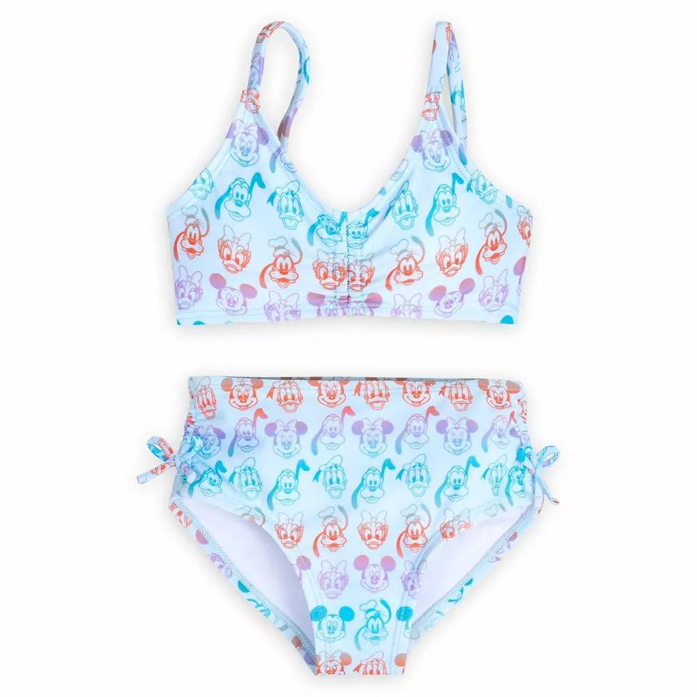 Great style meets the best of pals with this Mickey Mouse and Friends two-piece swimsuit. Mickey, Minnie Mouse, Donald Duck, Daisy Duck, Goofy and Pluto are all smiles in the fun and colorful allover pattern. The cinched top and the UPF 50+ built-in UV protection makes it the cutest, smartest bikini on the beach.