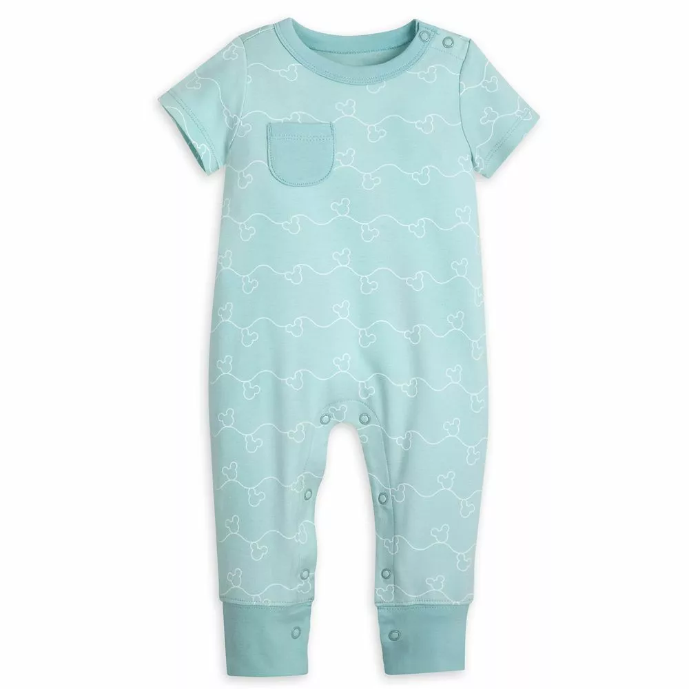 Your little one will be covered in little Mickeys with this coordinated gift set for baby. The short sleeve bodysuit and blanket feature an allover print of wavy lines hung with Mickey icons while the final part of the three-piece set is a matching beanie with Mickey ears!