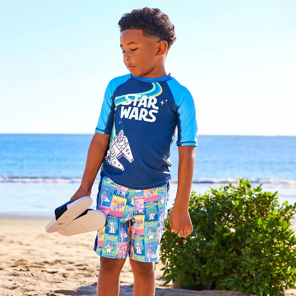 Their imagination will take them from galaxies far, far away to waters much closer to home with this Millennium Falcon rash guard. Inspired by the Star Wars saga, it features stylized art of the film’s logo and the beloved ship. With UPF 50+ built-in UV protection, you might say it comes with its own kind of deflector shield. Han Solo and Chewie would be proud.