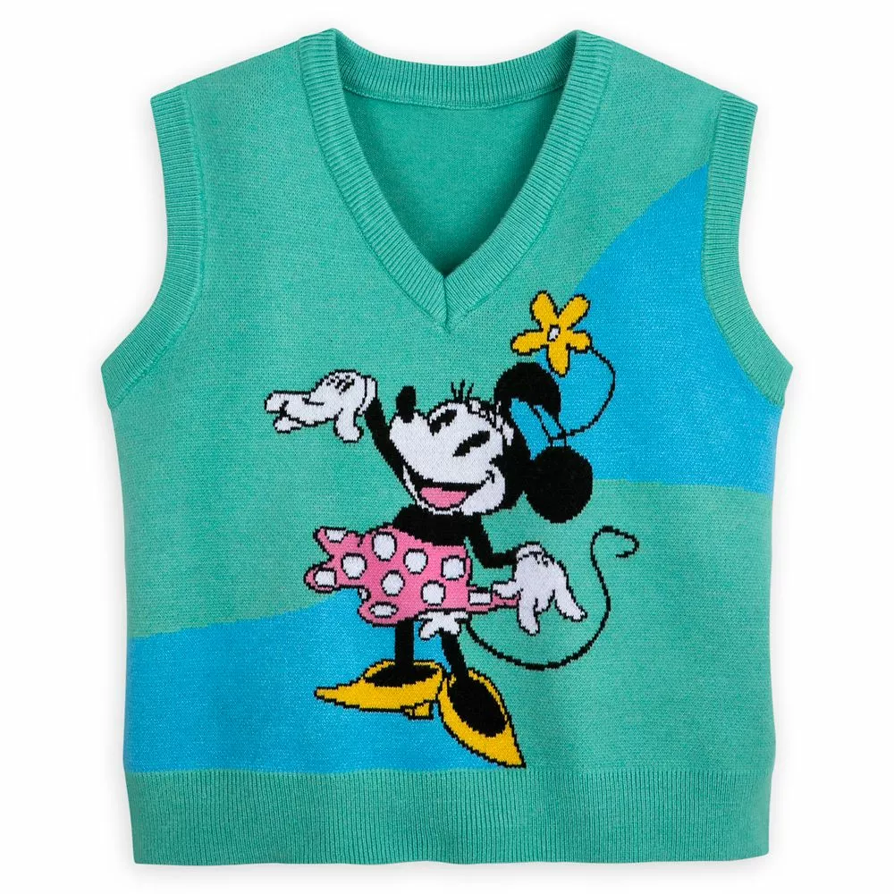 Timeless charm and modern style make this Minnie Mouse sweater vest as irresistible as she is. Vintage-style art of the lovable Miss M celebrates her classic look and sparkling personality. Soft and chic, this knit vest is the perfect way to add color and joy to any look.