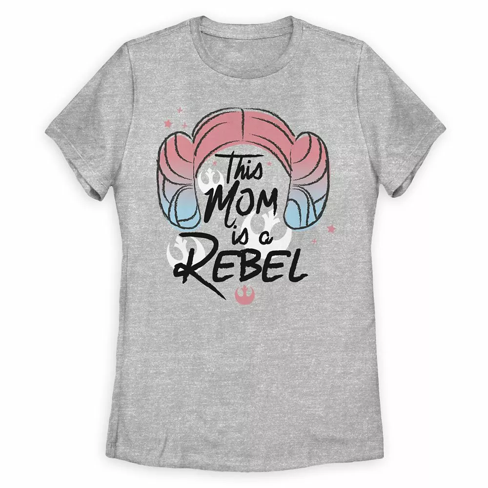 Let Mom feel the Force of your support with this mottled, heathered knit tee boasting that ”This Mom is a Rebel.” Princess Leia’s famous hair buns and the Rebel Alliance Starbird will ensure her ruling role in the new Empire.