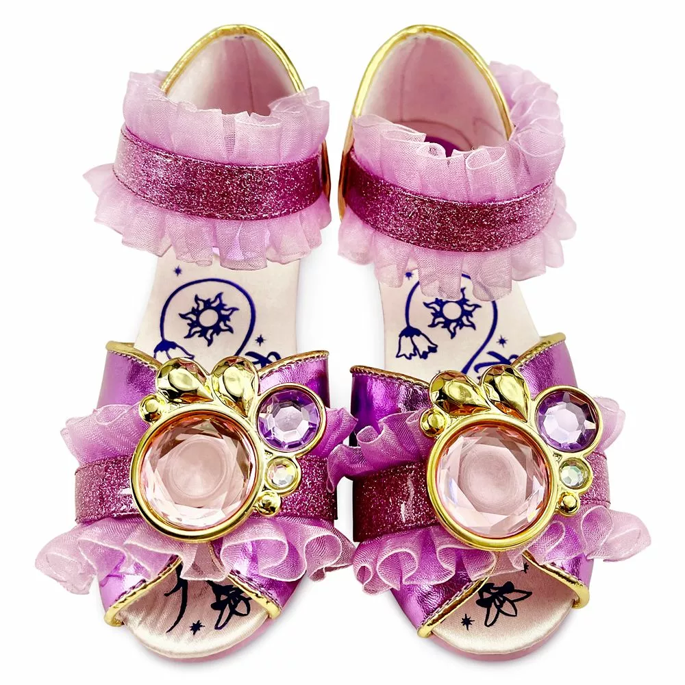 Your captivating Princess will step out into a world of pure fantasy wearing these glittering ankle strap shoes. Featuring golden trims, organza ruffles, and faceted gem adornments, they are made to match perfectly with our Rapunzel costume collection.