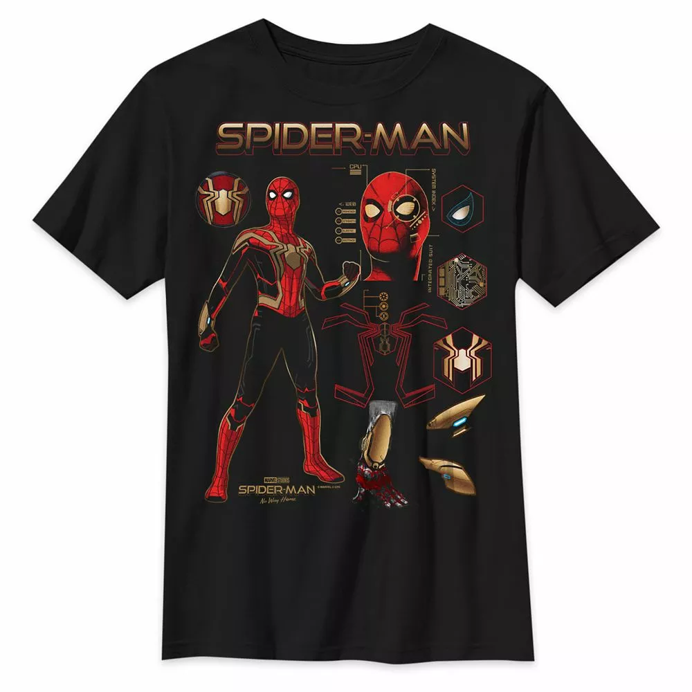 A cool schematic illustration features Spider-Man’s integrated Iron Spider Suit and Red and Black Suit on this cotton tee. Inspired by his latest cinematic adventure, Spider-Man: No Way Home, the top shows exactly what makes a super hero.