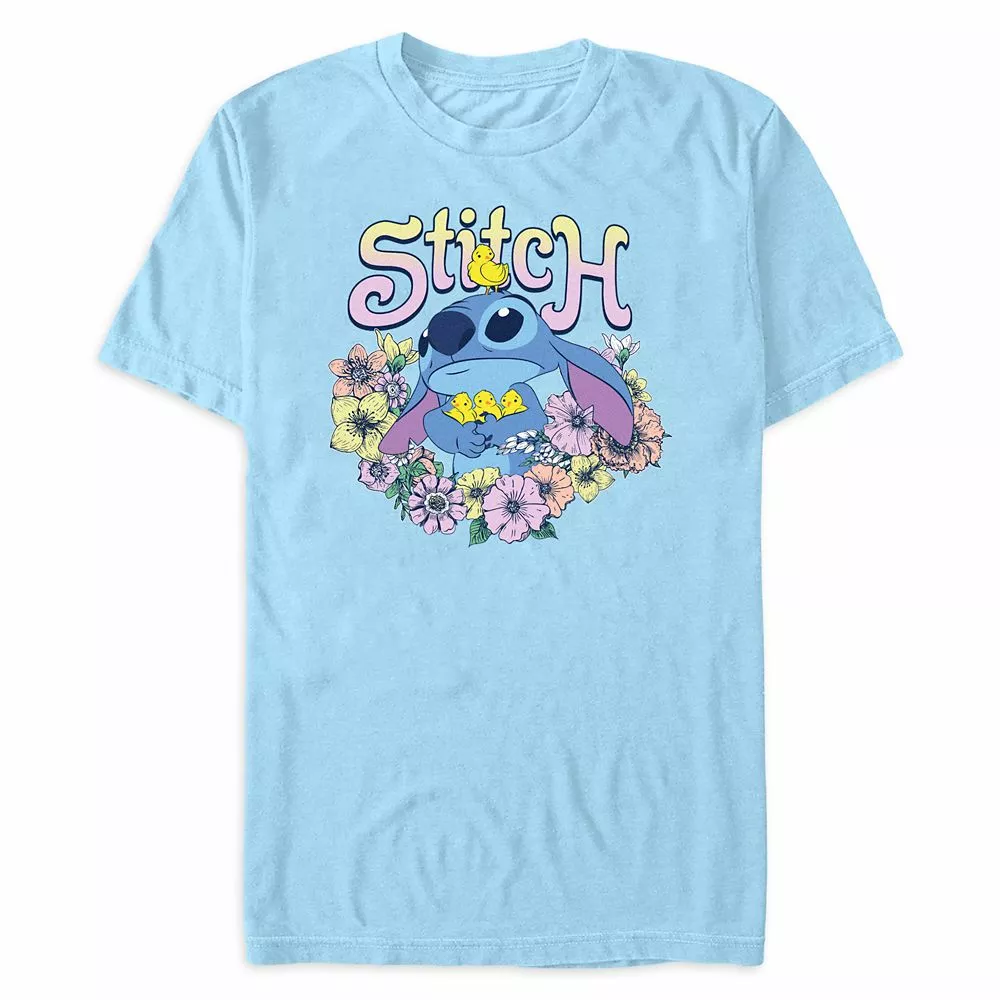 Spring is bursting out all over for Stitch and a handful of baby chicks on this all-cotton tee featuring floral motifs and pastel colors. Don’t make a peep when you slip it into a loved one’s gift basket, as the surprise will be prized by all!