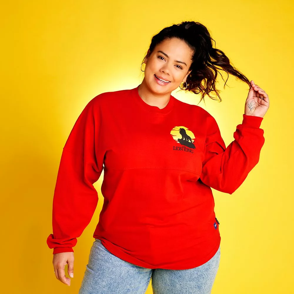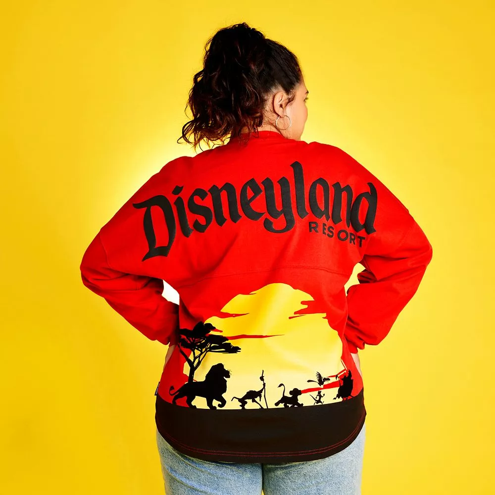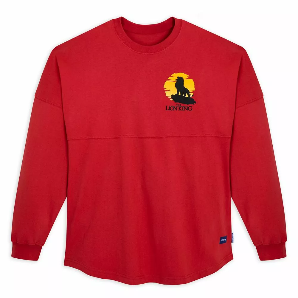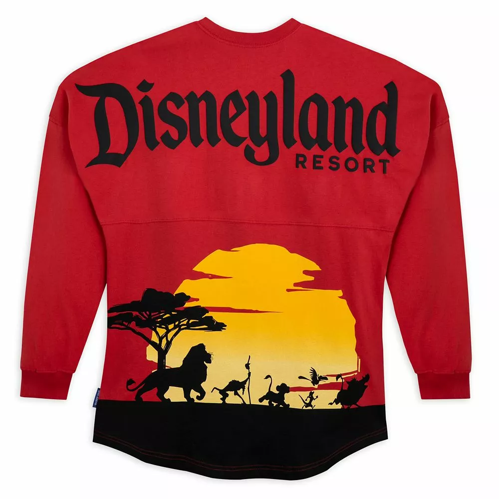 Express a worry free philosophy in this souvenir Spirit Jersey inspired by Disney’s The Lion King, featuring the ”Hakuna Matata” crew and puffy Disneyland logo on back. Sunset graphics and silhouettes are set against a brilliant red fabric.